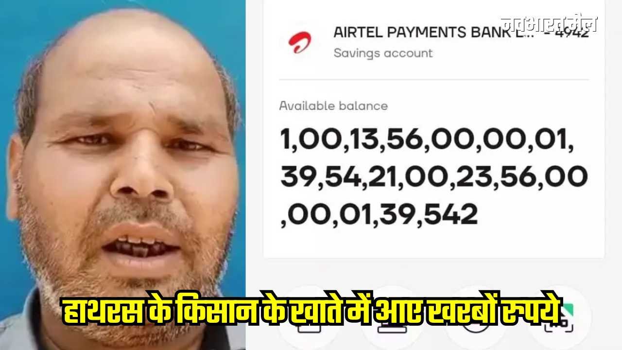 मीडिया रिपोर्ट्स के अनुसार, यूपी के हाथरस जिले के सादाबाद अंतर्गत मिढ़ावली गांव निवासी अजीत नामक किसान के खाते में 10 नील 1 खरब 35 अरब 60 करोड़ 13 लाख 95 हजार रुपये से अधिक की बड़ी रकम जमा हुई है। इतनी बड़ी रकम पाकर वह आश्चर्यचकित हो गया। किसान अजीत के अनुसार जब उसने अपना एयरटेल पेमेंट बैंक खाता चेक किया तो उसके होश उड़ गए। उनके खाते में जो रकम आई वह बहुत बड़ी थी।