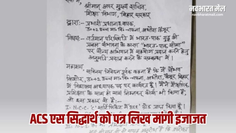 India Pakistan War : कैमूर के शिक्षक वैभव किशोर ने पेश की देशभक्ति की मिसाल, सीमा पर सेवा देने की मांगी अनुमति.